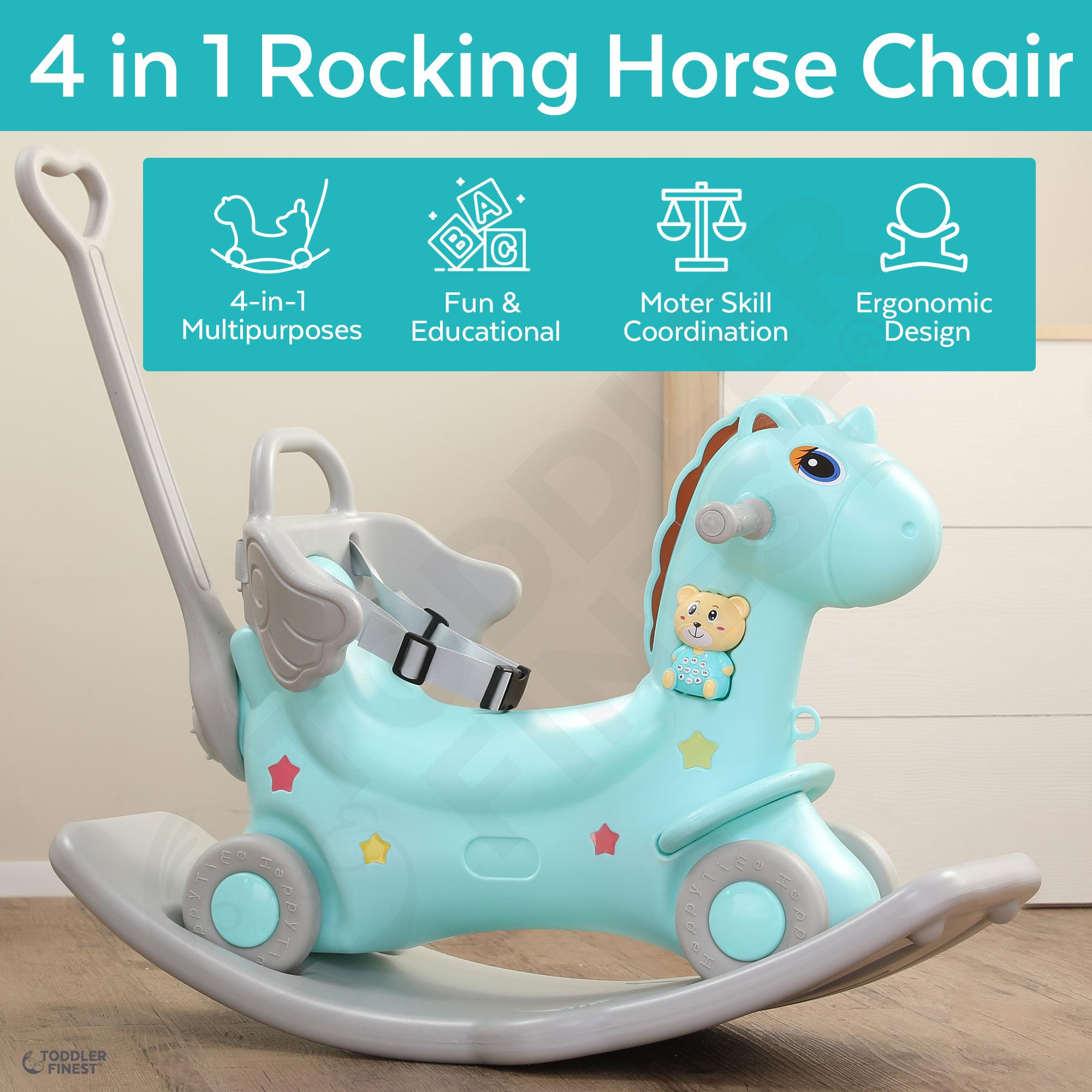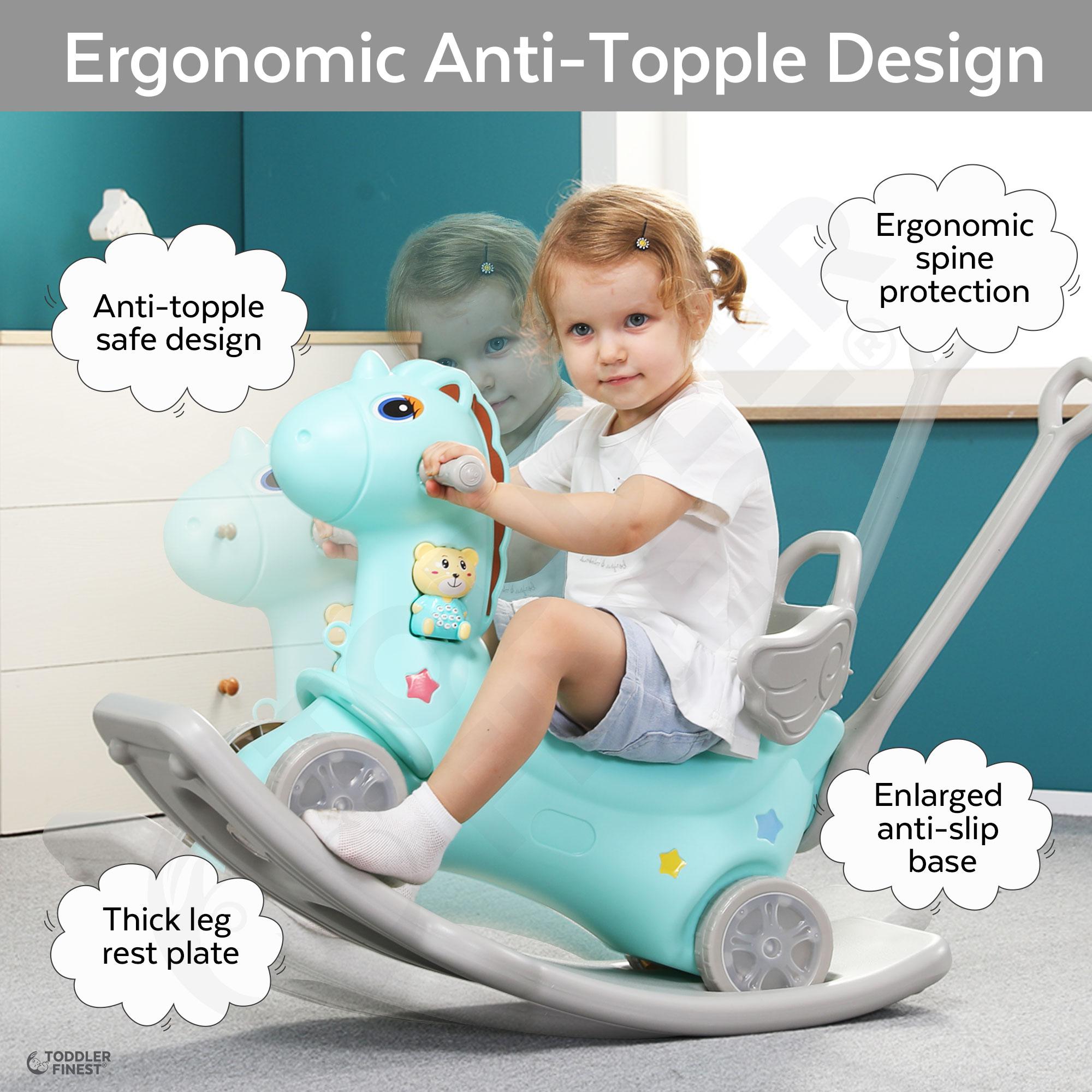 4-in-1 Rocking Horse - Push Glider Pony Rocker Toy - Musical Player Riding Chair - Ride On Rocking Animal - 1.5x Thicker Safer Durable - Anti-Slip Smart Auto Balance - For 1,2,3 year old Boy Girl Child Toddler - Outdoor Indoor Birthday Gift (ToddlerFinest)